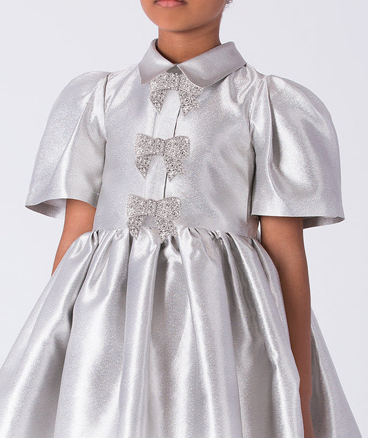 Fiyonk Detaylı Gümüş Kız Çocuk Elbisesi